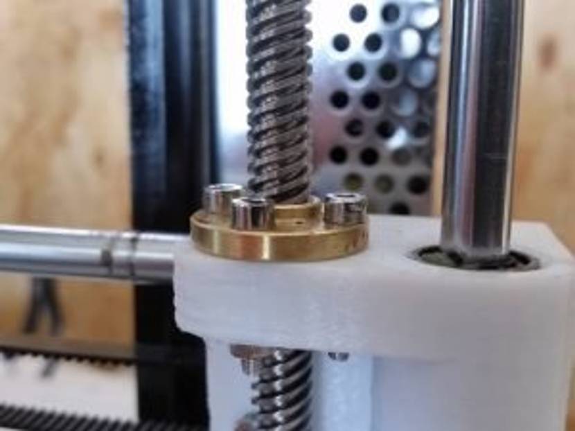 Günstiger sind Trapezgewindespindeln mit Messing-Gewindebuchsen. Diese besitzen eine gute Passform, können sich jedoch abnutzen und Spiel aufweisen, wodurch der sogenannte „Umkehrfehler“ entsteht.