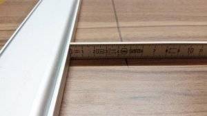 - Mit dem gemessenen Maß kann nachfolgend die Führungsschiene (Wasserwaage, Richtscheit oder gerade Holzleiste) auf die Arbeitsplatte gespannt werden.