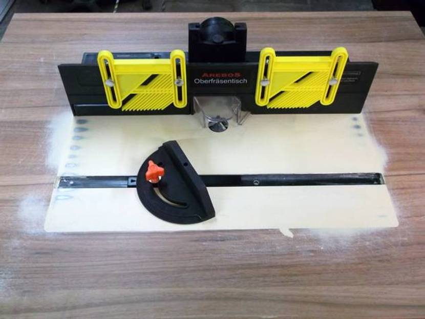 Die Fragen „Muss es ein bestimmter Frästisch sein?“ oder „Gibt es Qualitätsunterschiede?“ könnten leicht mit einem Nein beantwortet werden. Natürlich heben sich immer einige Hersteller ab und bieten eine bessere Qualität oder einen erhöhten Funktionsumfang. Betrachtet man sich jedoch die günstigeren Modelle (von 40 bis 100 €), so fällt auf, dass sie sich alle mehr als ähnlich sehen und nur einen anderen Firmenschriftzug tragen. Es möchte natürlich niemand unterstellen, die Frästische kämen von einem Anbieter und werden nur passend geprägt. Qualitativ und optisch unterscheiden sie sich jedoch kaum. Hier kann man Glück oder Pech haben. Ein vor geraumer Zeit gekauftes Modell war perfekt gerade, wogegen das in der Bauanleitung verwendete mittig, bis zu 2 mm abfiel. Preislich oder optisch unterschieden sie sich nicht.