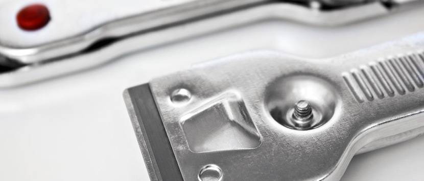 Mit einem Ceranfeldschaber lässt sich nicht nur das Kochfeld reinigen, der praktische Haushaltshelfer eignet sich auch ideal dafür, um die Klebstoffreste des Montageklebers zu entfernen.