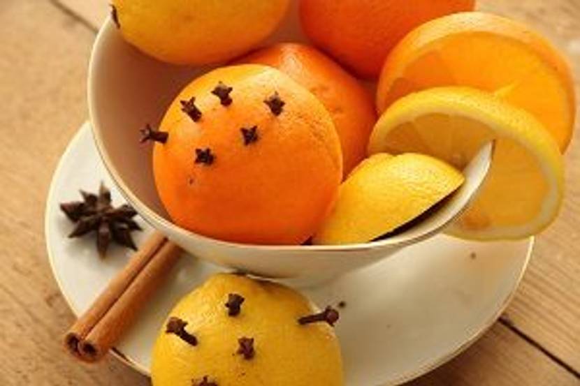 - Stecken Sie einige Gewürznelken in eine frisch aufgeschnittene Zitrone, Limette oder Orange