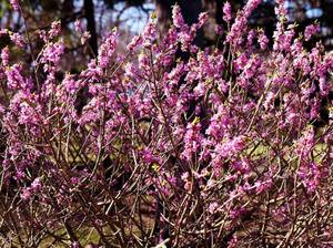 Der Echte Seidelbast (Daphne mezereum) ist ein beliebter Winterblüher mit rosa Blüten, die ab Febraur einen angenehmen Duft verbreiten. Im Anschluss entwickeln sich rote Steinfrüchte, die einigen Vogelarten als Nahrung dienen.
